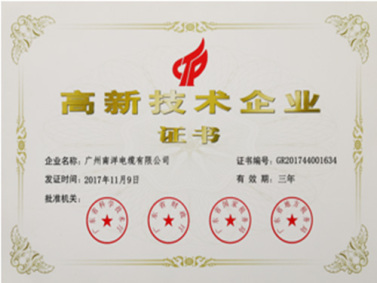 广州南洋电缆有限公司检测中心获得中国合格评定国家认可委员会认可证书,广州南洋电缆有限公司是中国电器工业协会电线电缆分会电气装备线缆与电线电缆材料专家委员会委员单位、全国电线电缆标准化技术委员会委员单位、CIGRE中国国家委员会电缆组委员单位、广东省电线电缆标准化委员单位、广东省专业标准化技术委员会委员单位,并参与多项国家标准及行业标准制定。公司荣获“广东省工程技术研究开发中心” 、“省级企业技术中心”和“广东省超高压电缆工程技术研究中心”,“广东省高新技术企业”等荣誉奖项。